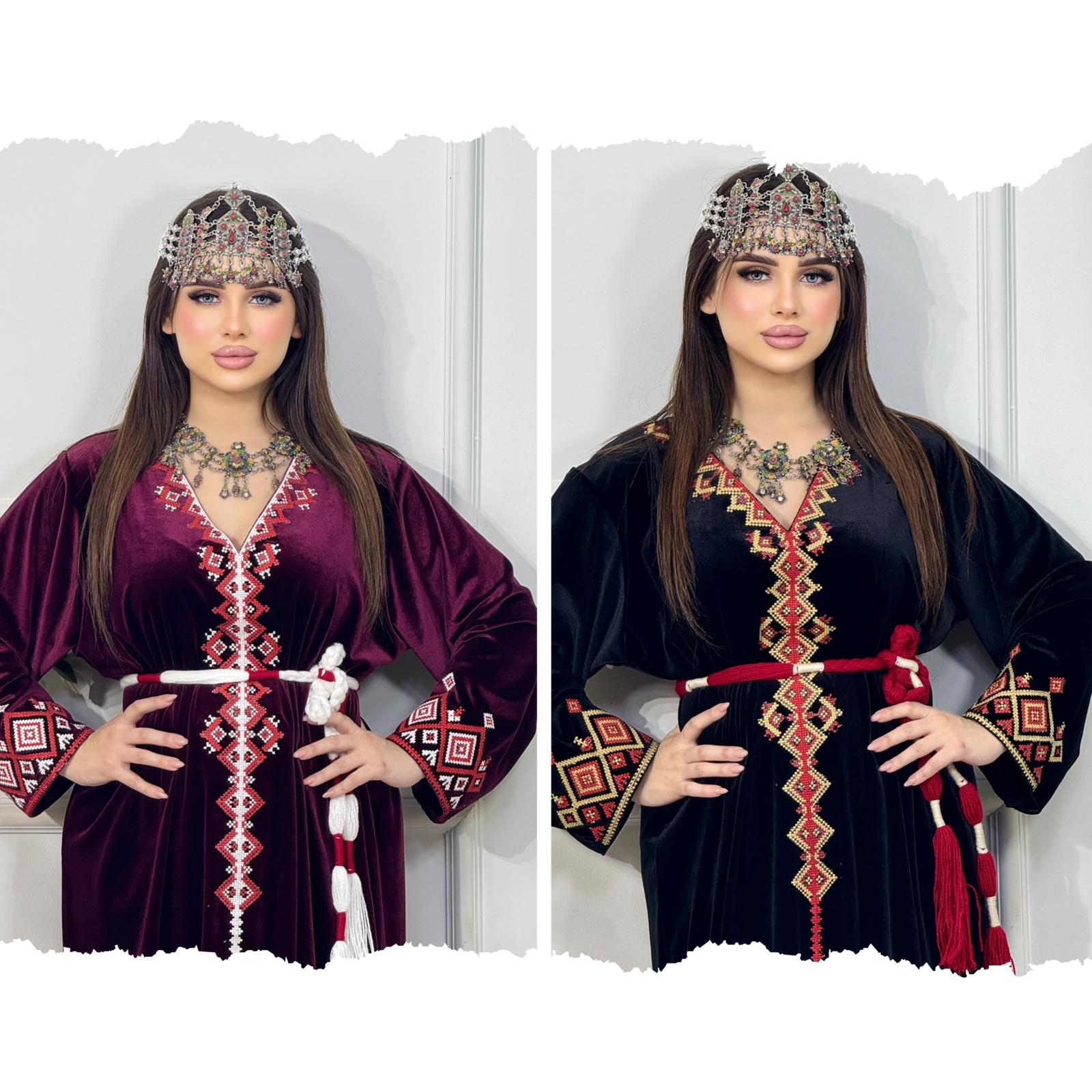 Caftan en Crêpe de Soie – Broderie Ton sur Ton & Ceinture Incluse