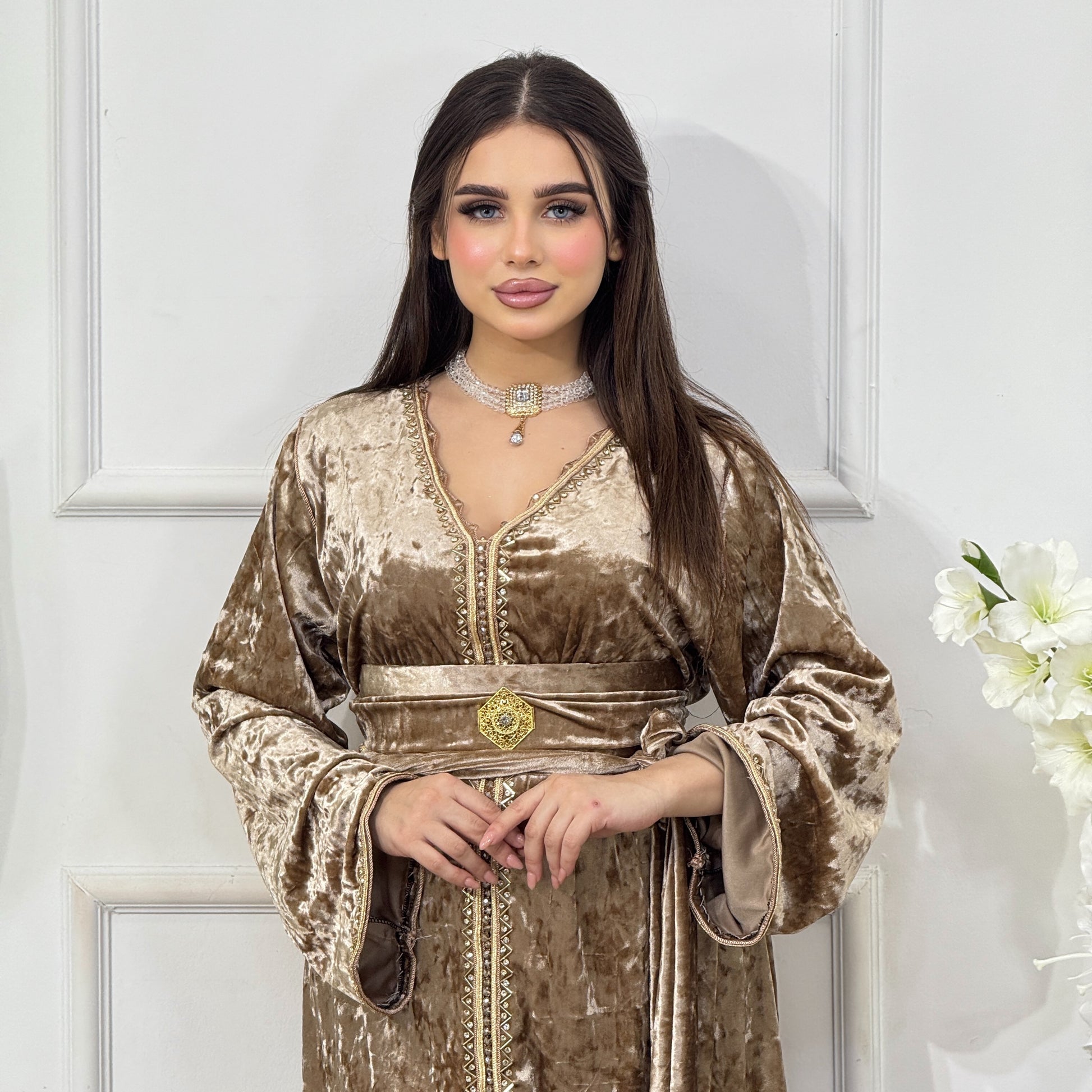 اكتشفي مجموعتنا من قفاطين المخمل، قطعة أساسية أنيقة وعصرية لجميع مناسباتكِ. مصنوعة من مخمل فاخر، ناعمة ومشرقة، كل تصميم مُعزز بتفاصيل ذهبية دقيقة، ليمنحكِ إطلالة راقية وعصرية.