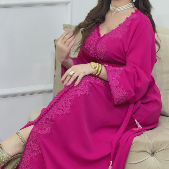 Un caftan lumineux, chic et raffiné, parfait pour les fêtes, cérémonies, soirées et grandes occasions.