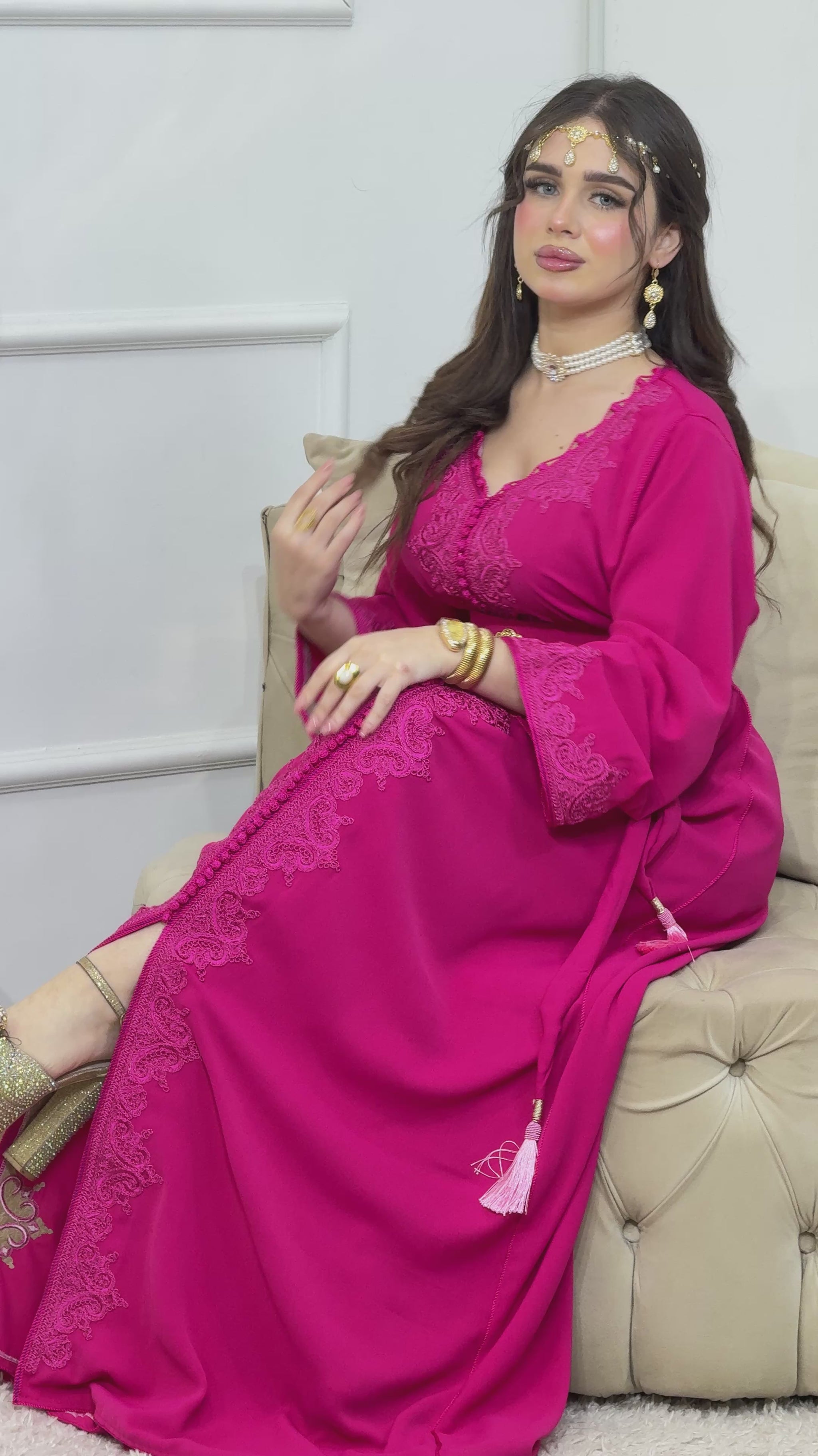 Sublimez vos occasions avec le Caftan Amani fuchsia, une pièce vibrante et ultra-féminine qui attire instantanément le regard. Confectionné en crêpe de soie haut de gamme, il offre un tombé fluide, élégant et très confortable.