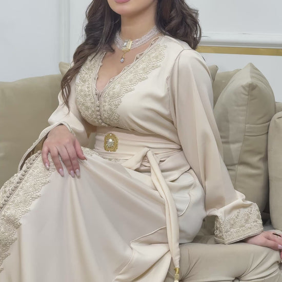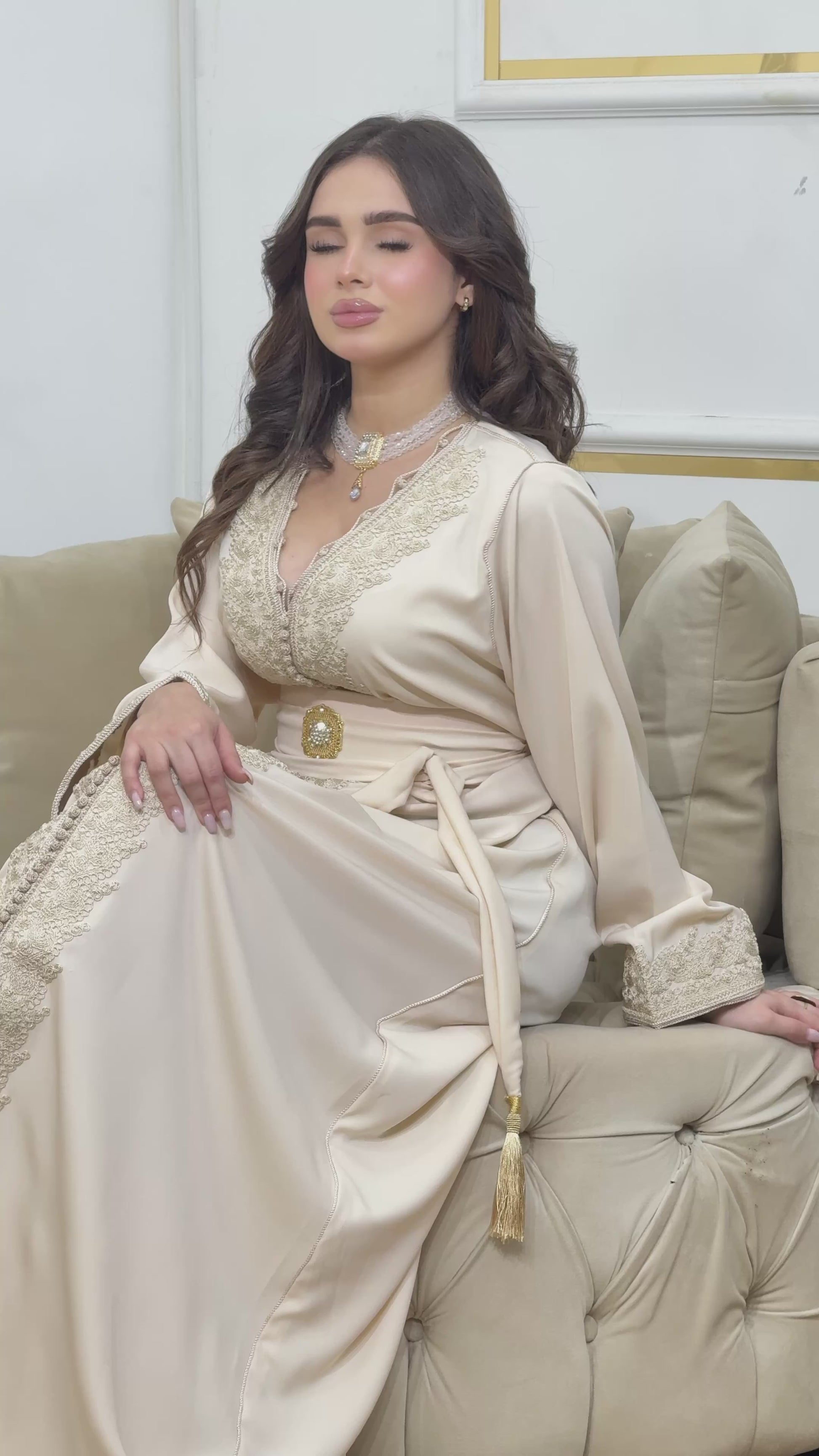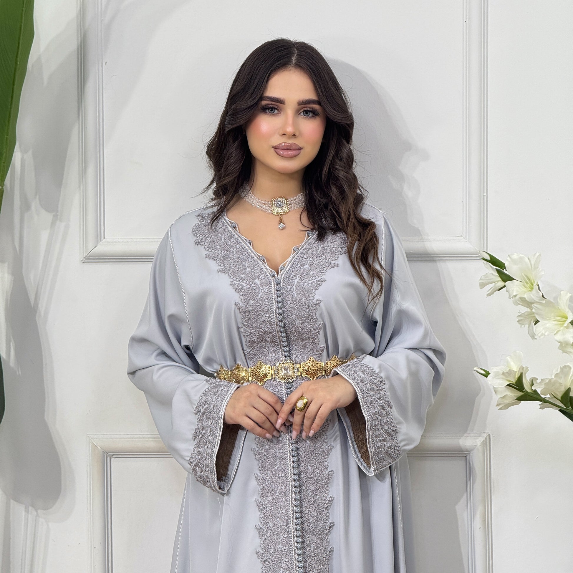 Caftan en Crêpe de Soie – Broderie Ton sur Ton & Ceinture Incluse