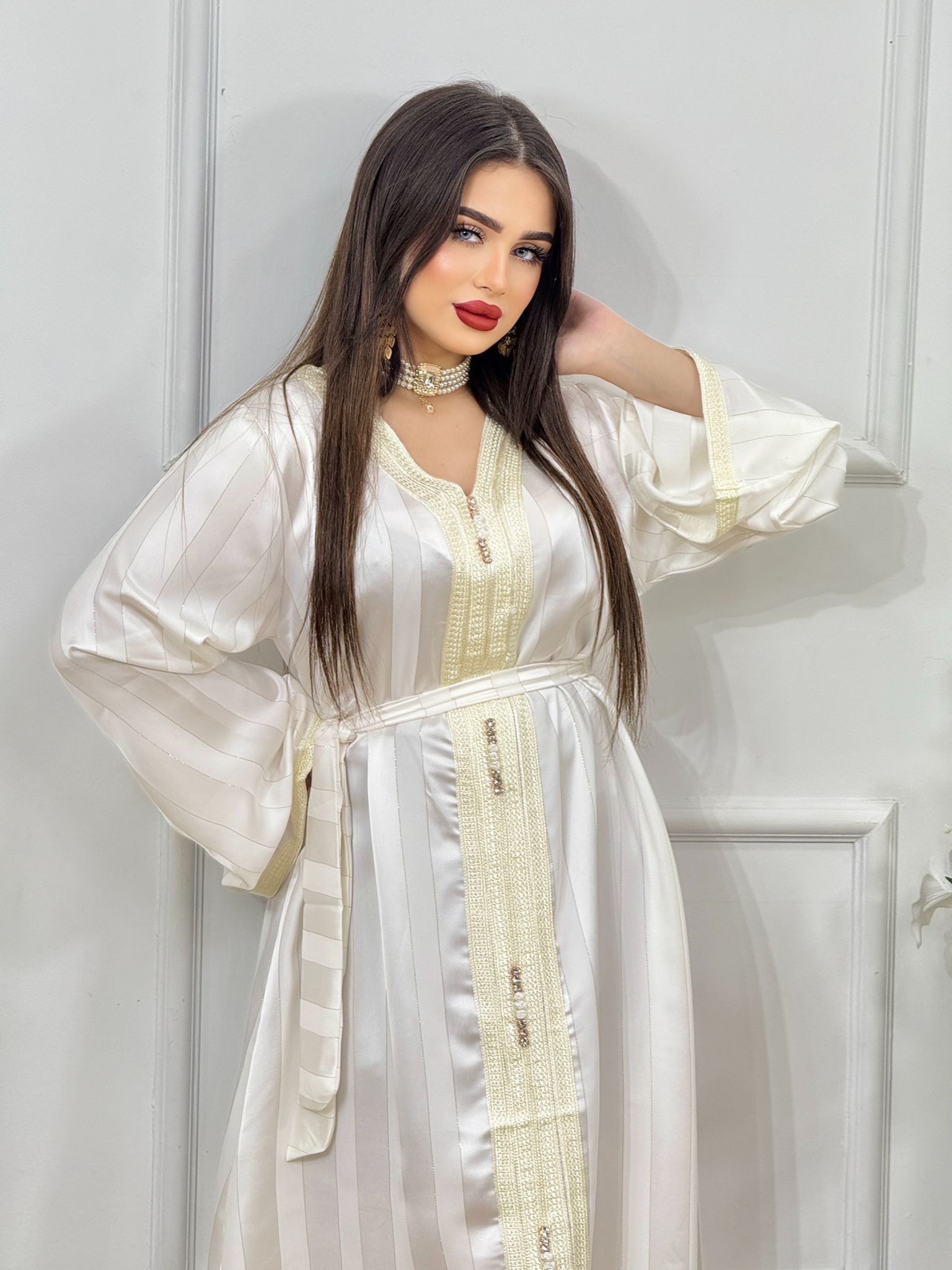 Découvrez le Caftan JAWHARA, un modèle élégant et minimaliste conçu pour sublimer toutes vos occasions. Sa coupe légère et fluide, rehaussée d’un tissu légèrement satiné, offre un confort optimal tout en apportant une touche raffinée. Livré avec une ceinture assortie, il permet d’ajuster parfaitement la silhouette. Disponible en trois tailles : M/L, L/XL et XL/XXL, ce caftan allie simplicité et sophistication avec expertise.